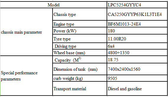 底盤主要性能參數 | 底盤型號 | CA5250GYYP63K1L3T1E4 | |