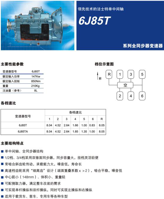 法士特變速器6J85T系列