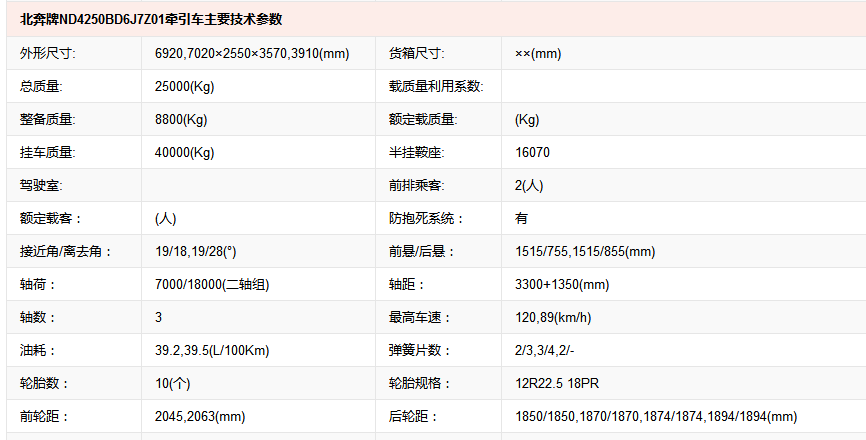 北奔牌ND4259BD6J7Z01危險(xiǎn)品牽引車(chē)beiben...